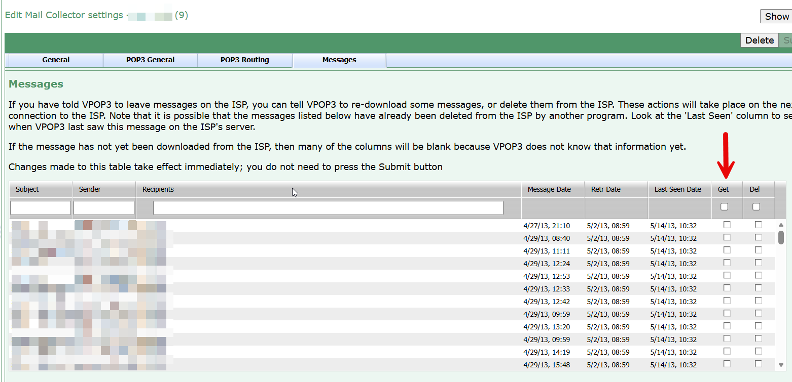 If, during this time, you want to make VPOP3 download those messages again, then you can do so.